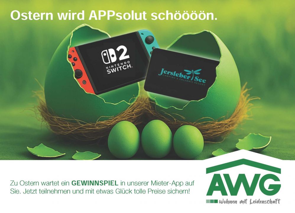 Mit unserer Mieter-App AWG zu Hause wird der Alltag nicht nur einfacher, sondern zu Ostern auch ein kleines bisschen spannender.